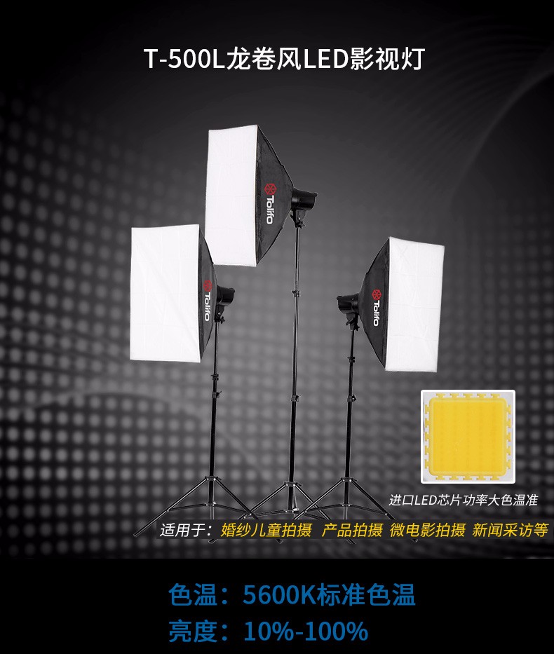 Tolifo圖立方T-500L攝影補(bǔ)光燈LED補(bǔ)光燈三燈套裝